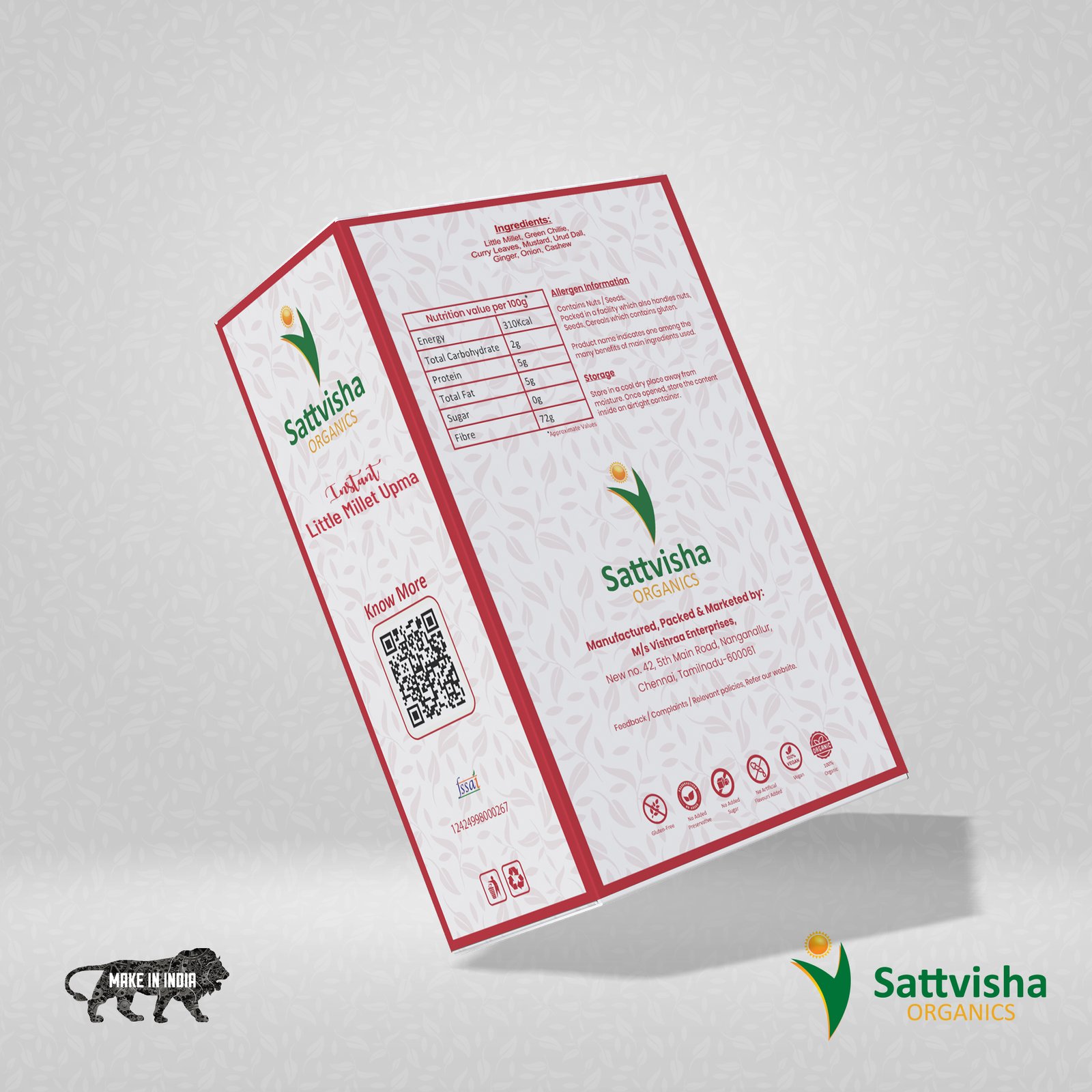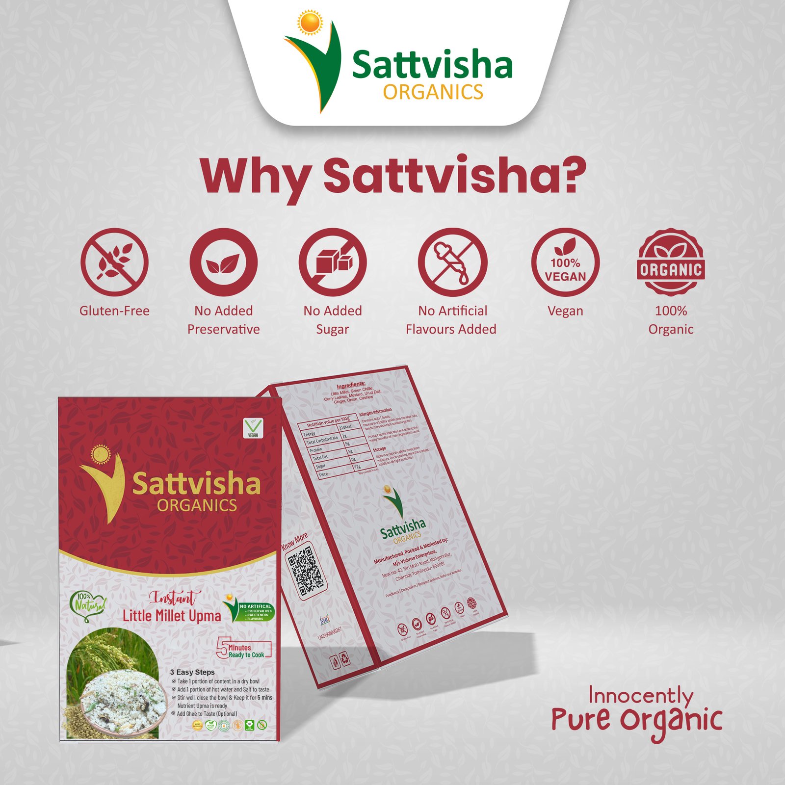 Sattvisha Instant Little Millet Upma Mix is made from little millets added with seasoning ingredients. Simple to make healthy tasty hot upma in just 5 minutes.